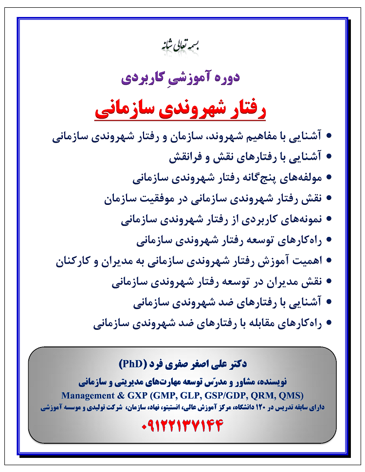 جهت برگزاری دوره آموزشی "رفتار شهروندی سازمانی"