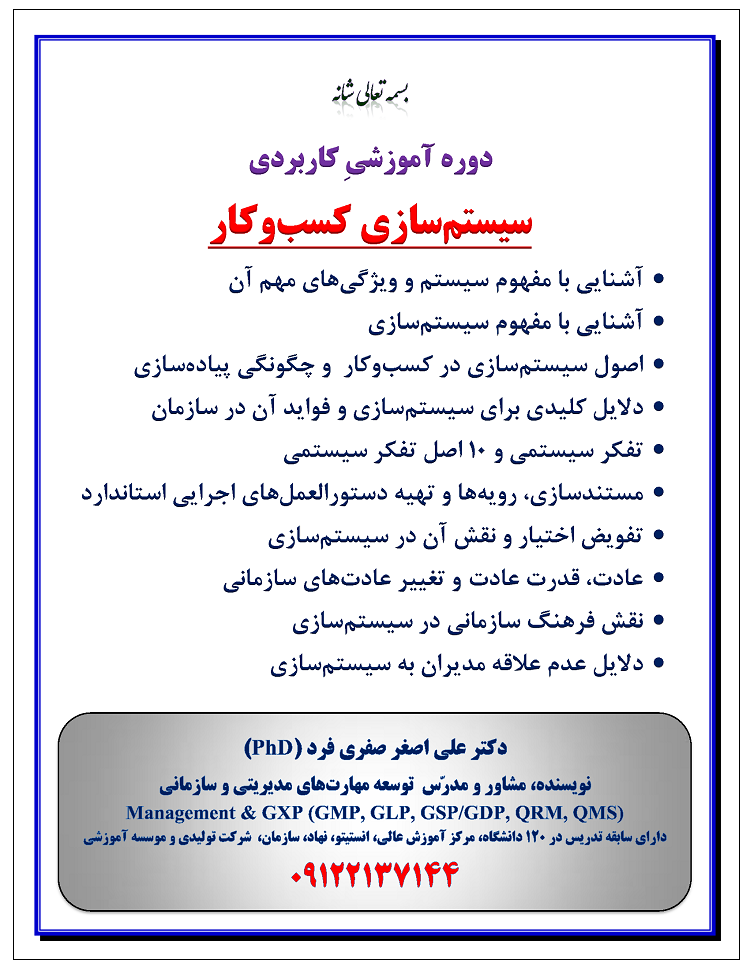 جهت برگزاری دوره آموزشی "سیستمسازی کسبوکار"