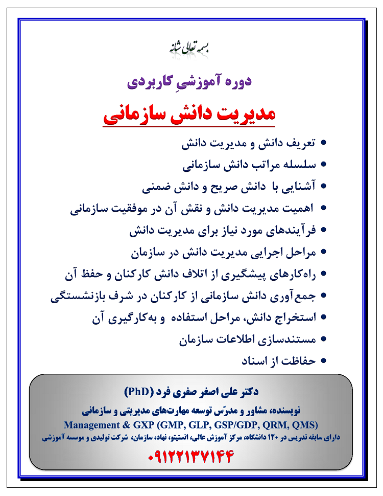 جهت برگزاری دوره آموزشی مدیریت دانش سازمانی