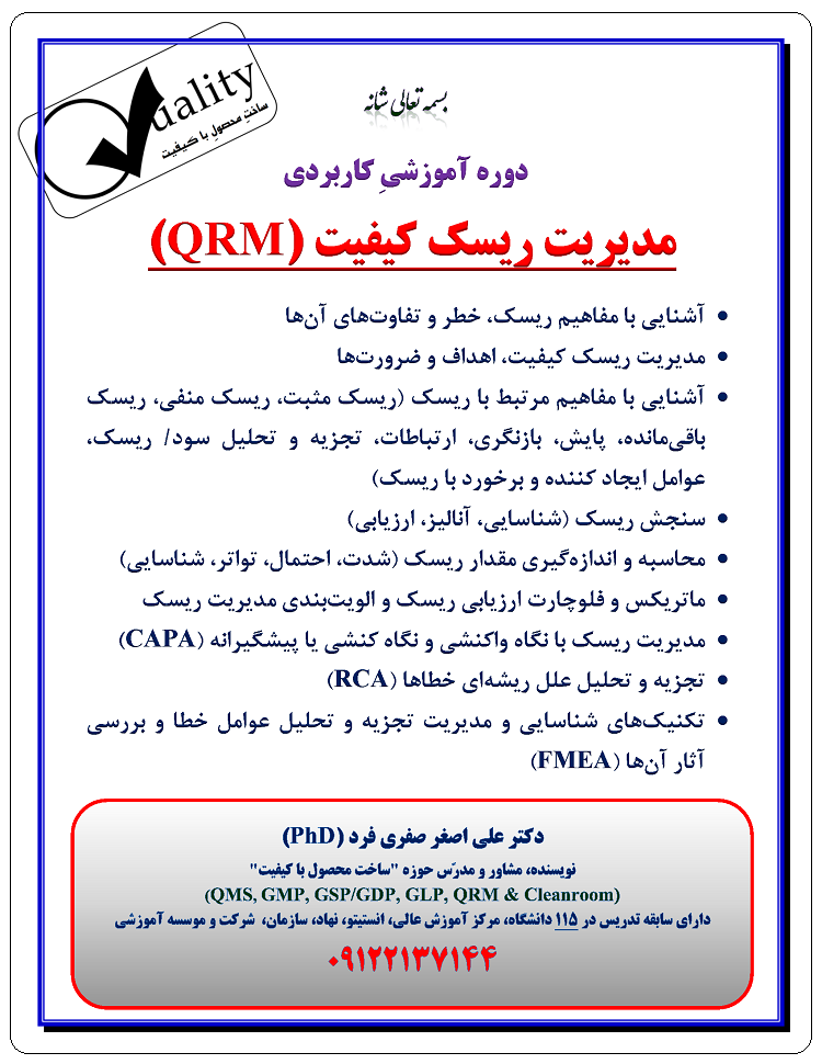 "مدیریت رویدادهای کیفیتی و خطاهای رایج در عدم پیروی از الزامات GMP"