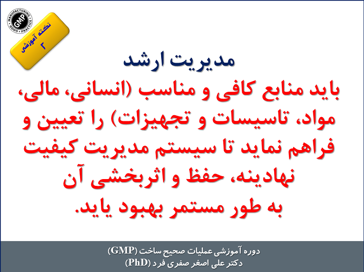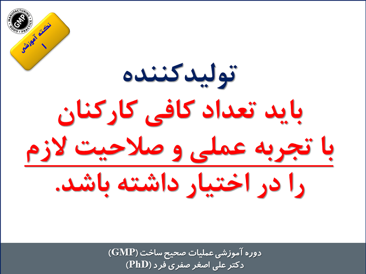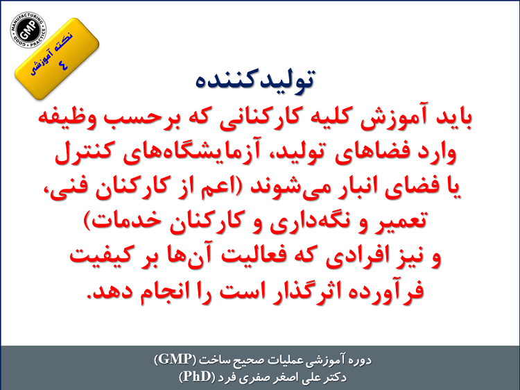 نکات برگرفته از دره آموزشی عملیات صحیح ساخت دارو و محصولات مرتبط (GMP)